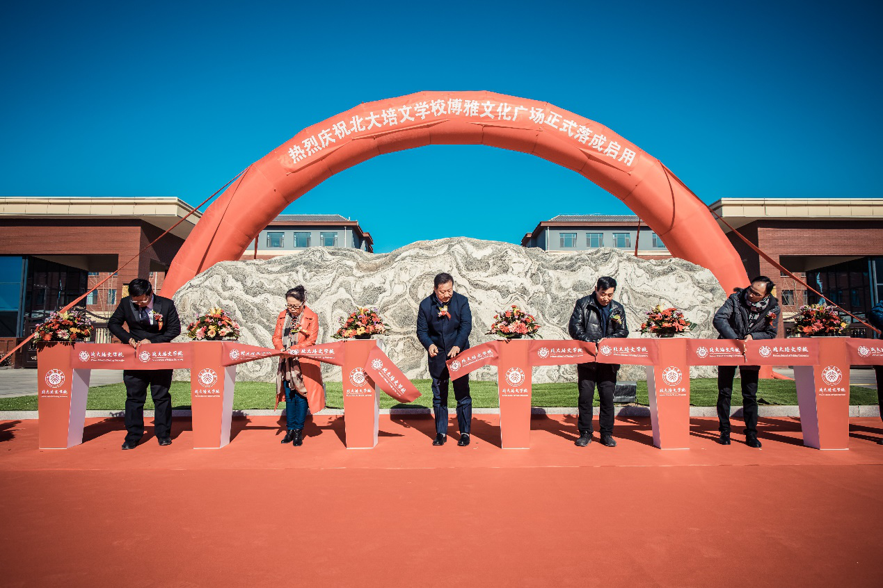 冬季風吹去霾天, 日出和煦照學園,暖心溫度人愜意, 信鴿舉翼道平安。11月25日上午,北大培文晉中實驗學校又一次迎來具有里程碑意義的盛事——學校正門及博雅文化廣場落成啟用典禮。